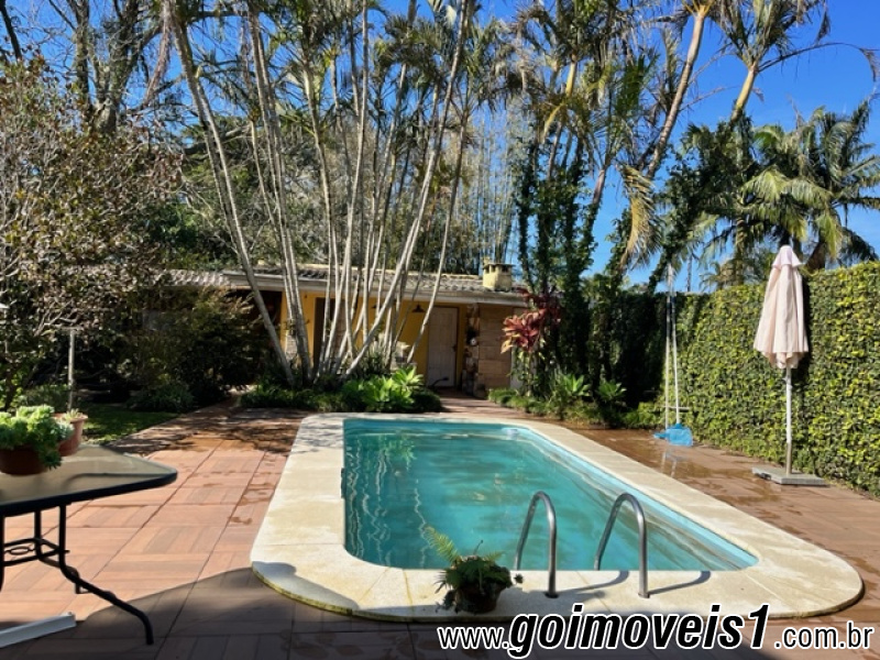Casa em alvenária, 1 suíte com closet, banheira e sacada, 3 dormitórios, sala de estar, sala de jantar, escritório, salão gourmet com churrasqueira, forno, área de serviço, dependência de empregada, piscina, pátio com plantas e jardim, anexo nos fundos, lavanderia, depósito. Terreno medindo de frente 15 metros, comprimento lateral 37 metros, área total 555m². Bairro residencial Porto Lacustre - Osório - RS.